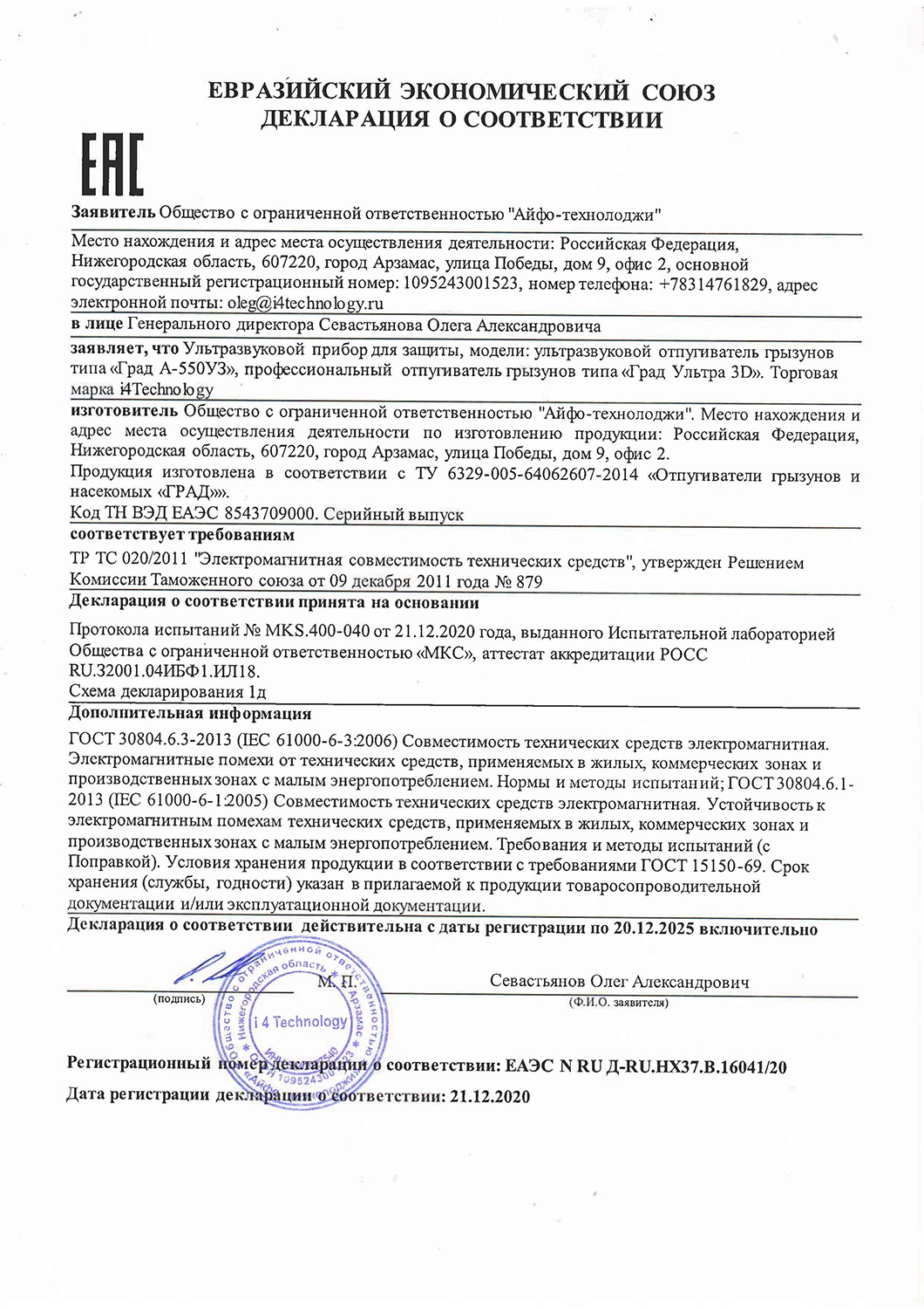 ГРАД УЛЬТРА 3Д разработан в России, аналогов, в том числе и от зарубежных производителей, не имеет. Эффективность отпугивателя подтверждается тестами и клиническими испытаниями.